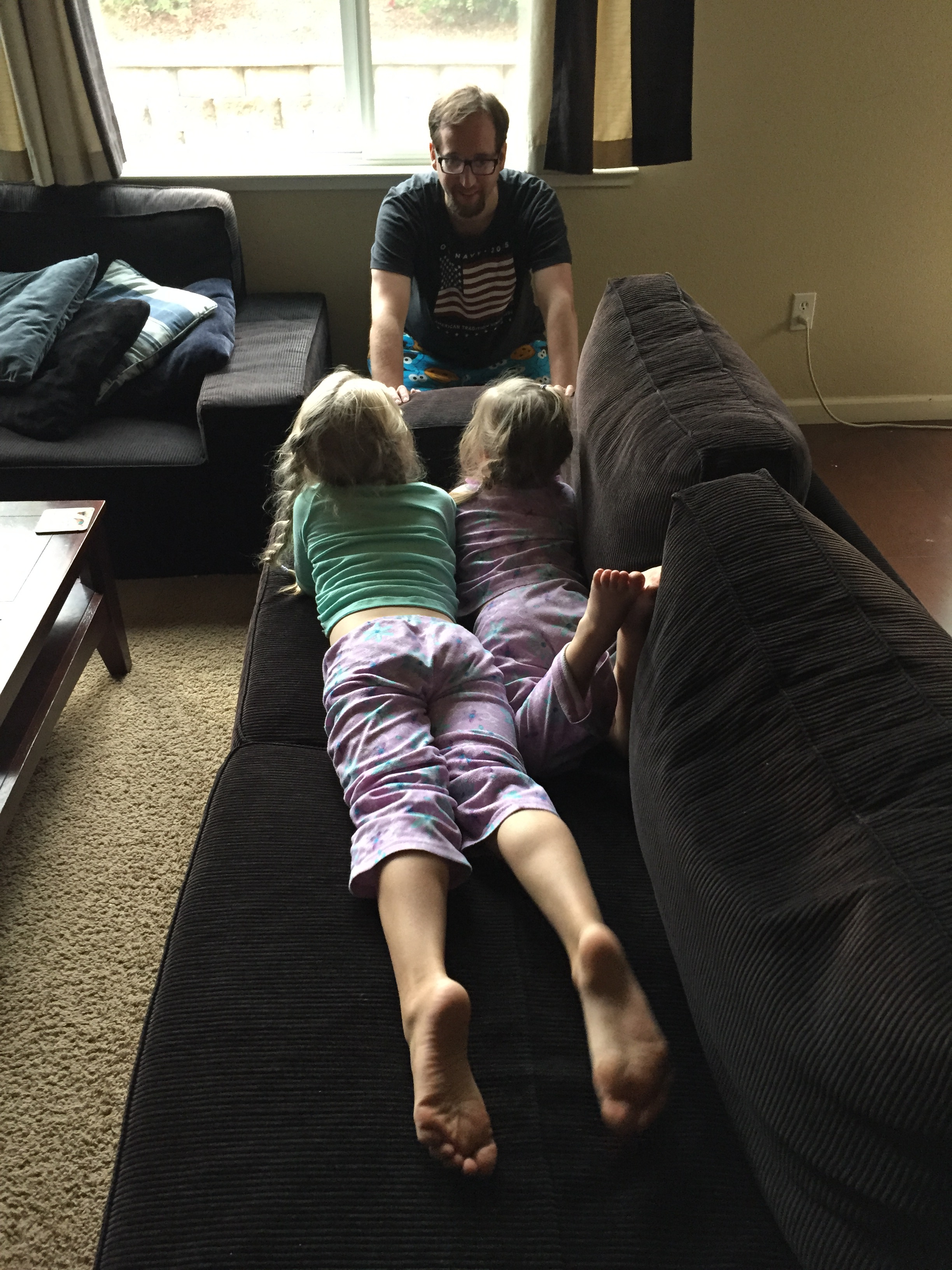 “Helping” Daddy move the couch. 🙂