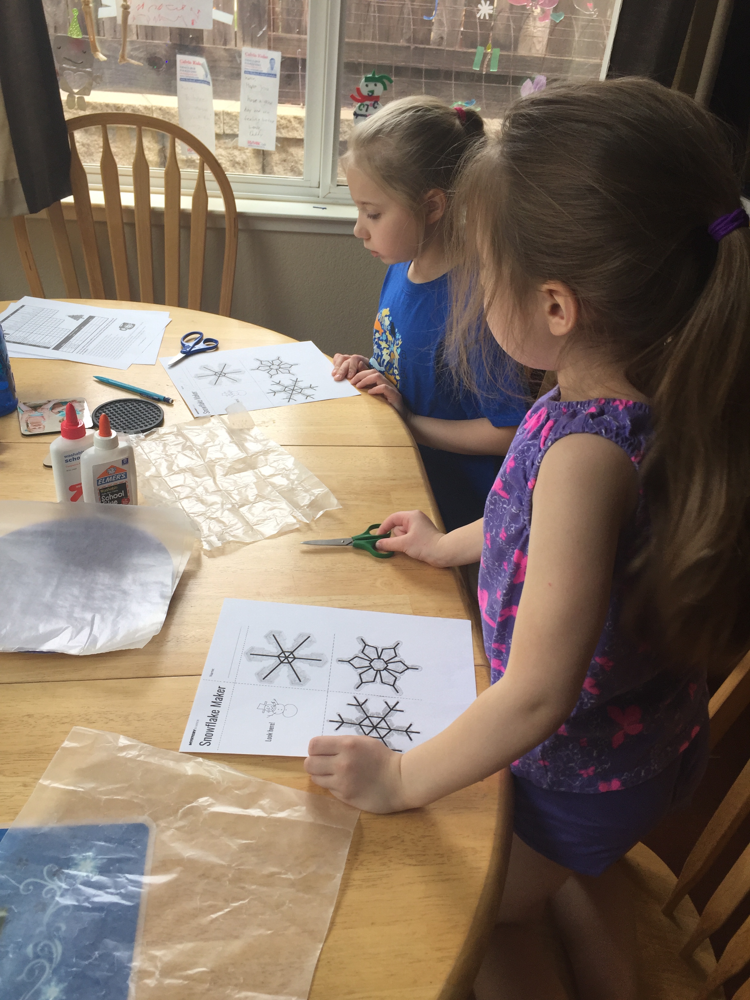 Making wax paper snowflakes.