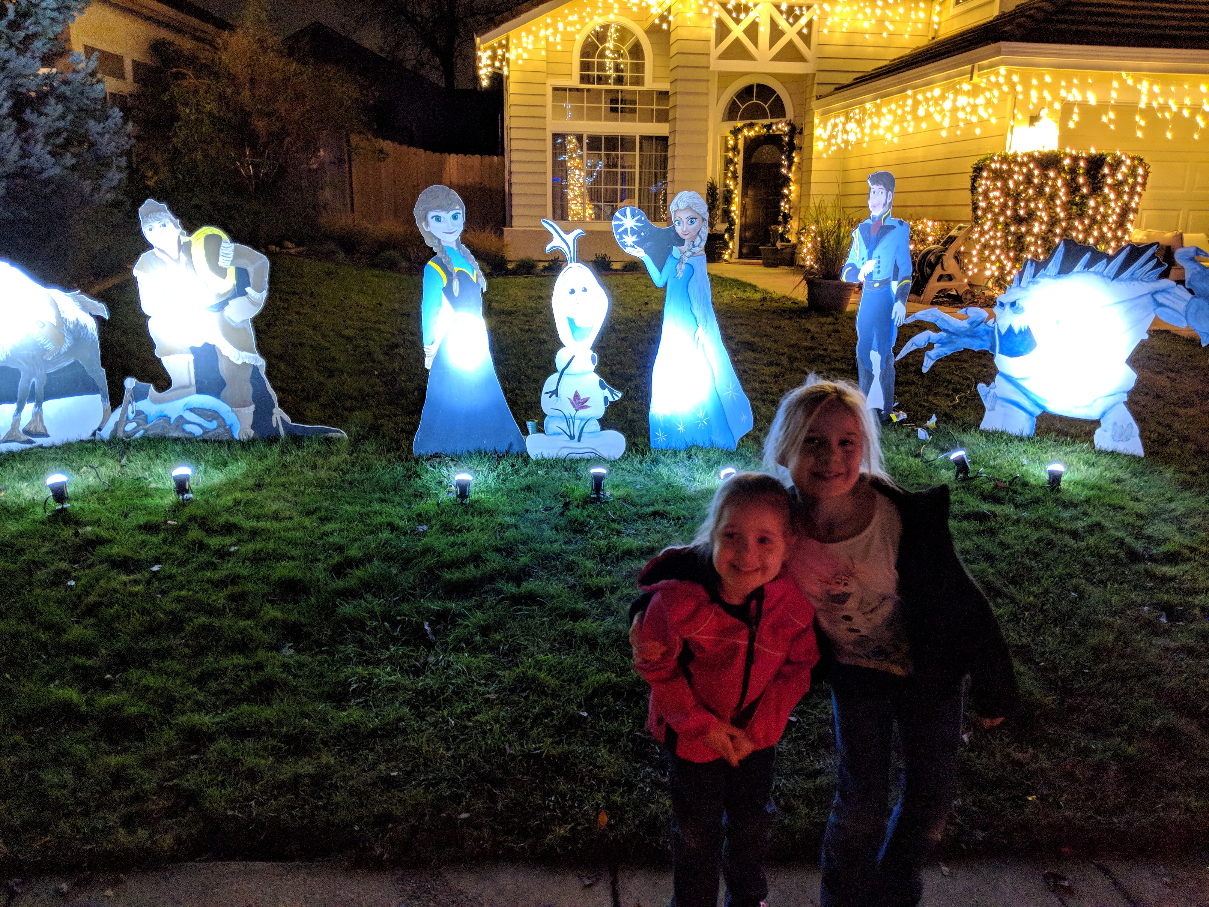 Looking at Christmas lights.