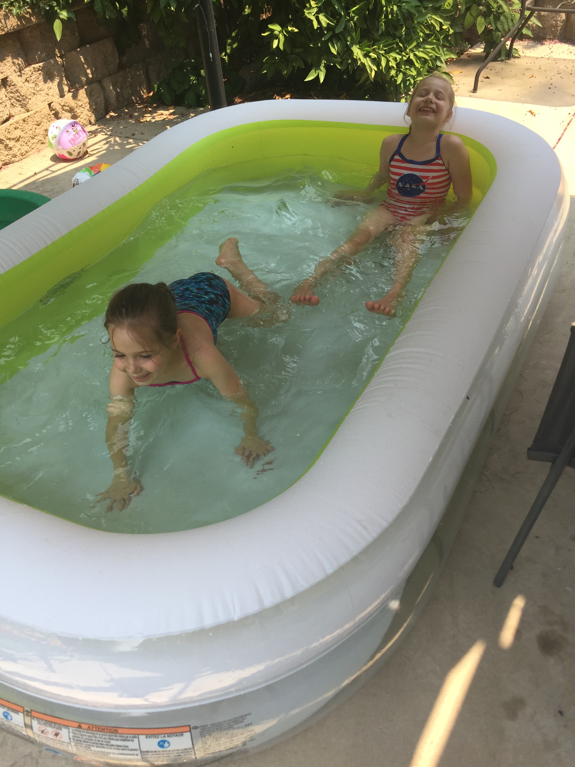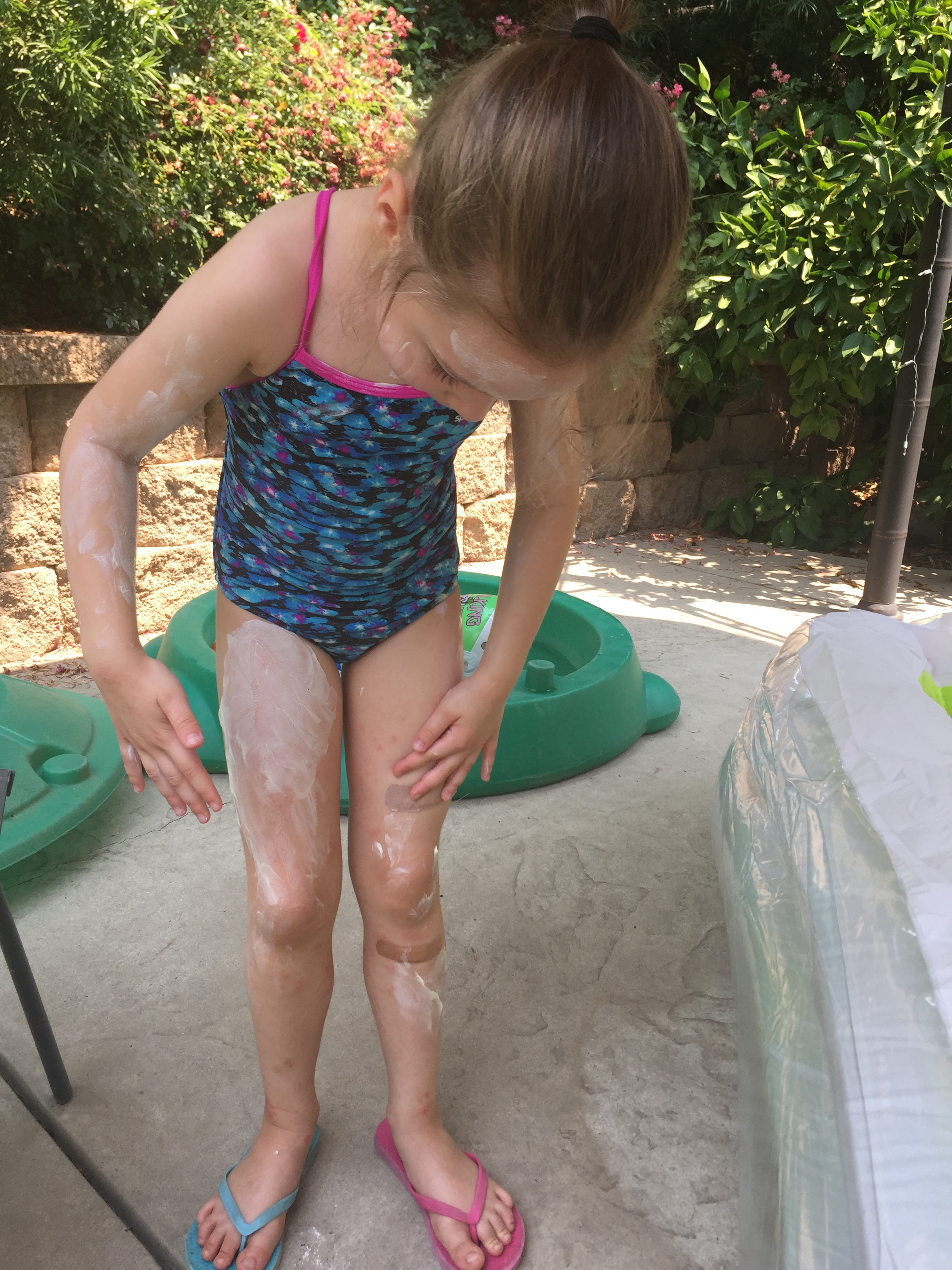 Katie decided to put her own sunscreen on. 🙂They had a great time in their new, bigger pool. 🙂 Share this:EmailFacebookTwitterPinterest