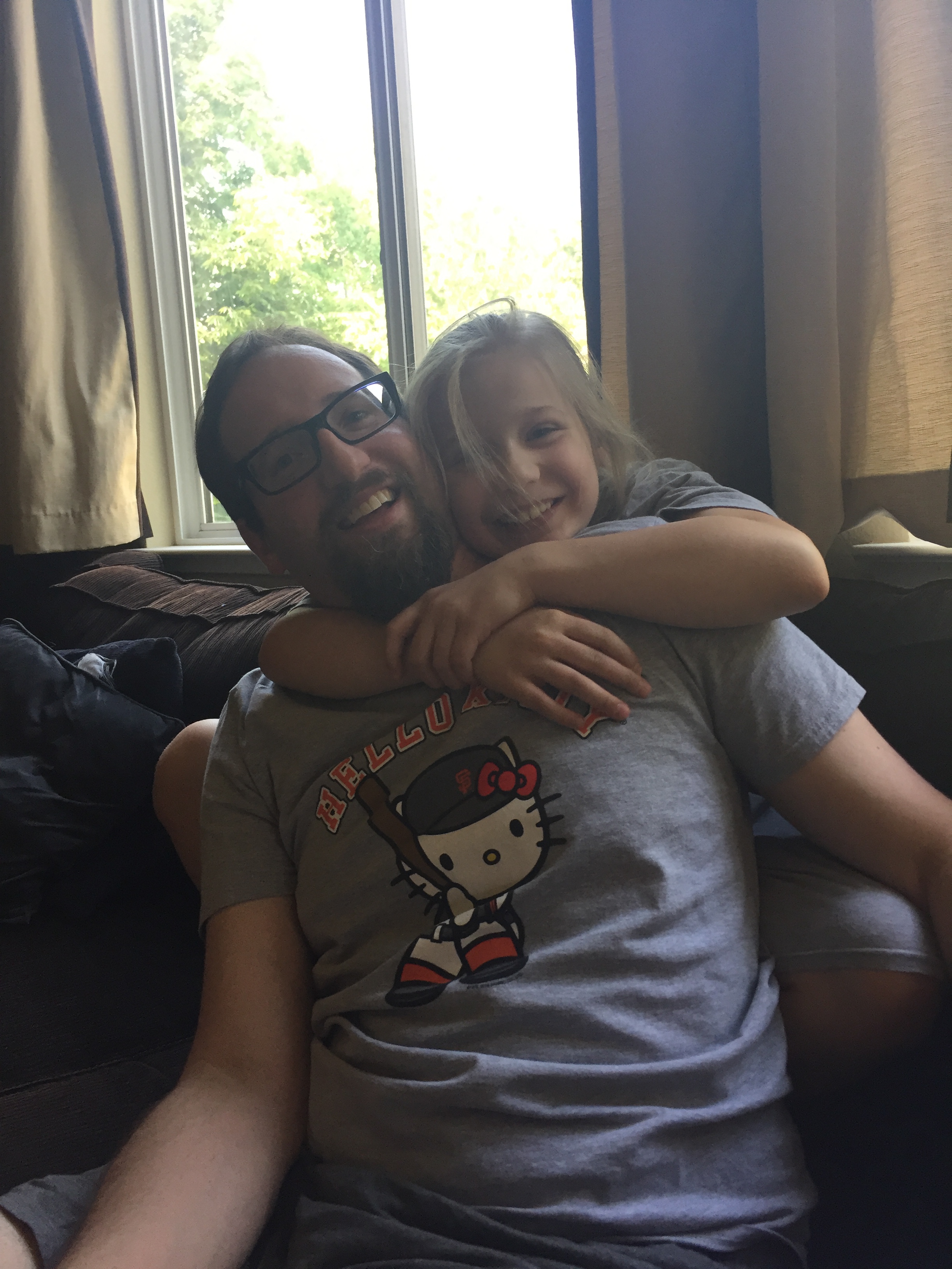 Wearing matching shirts. 🙂