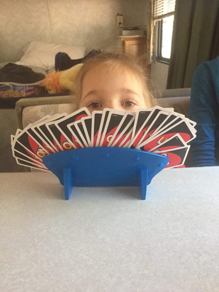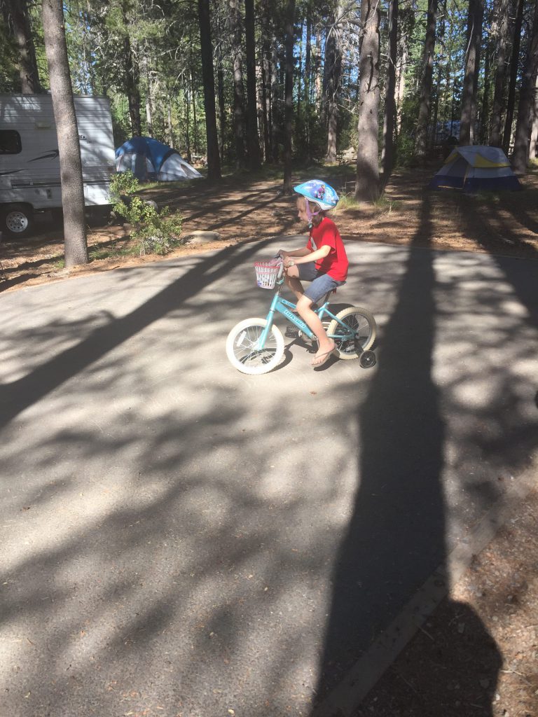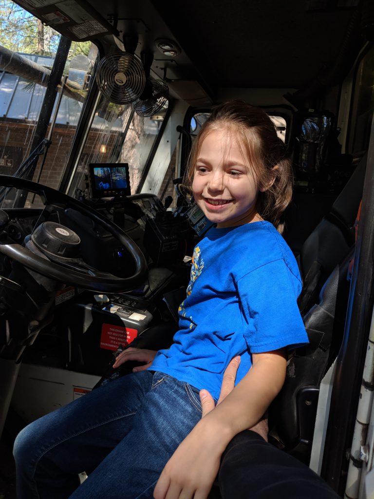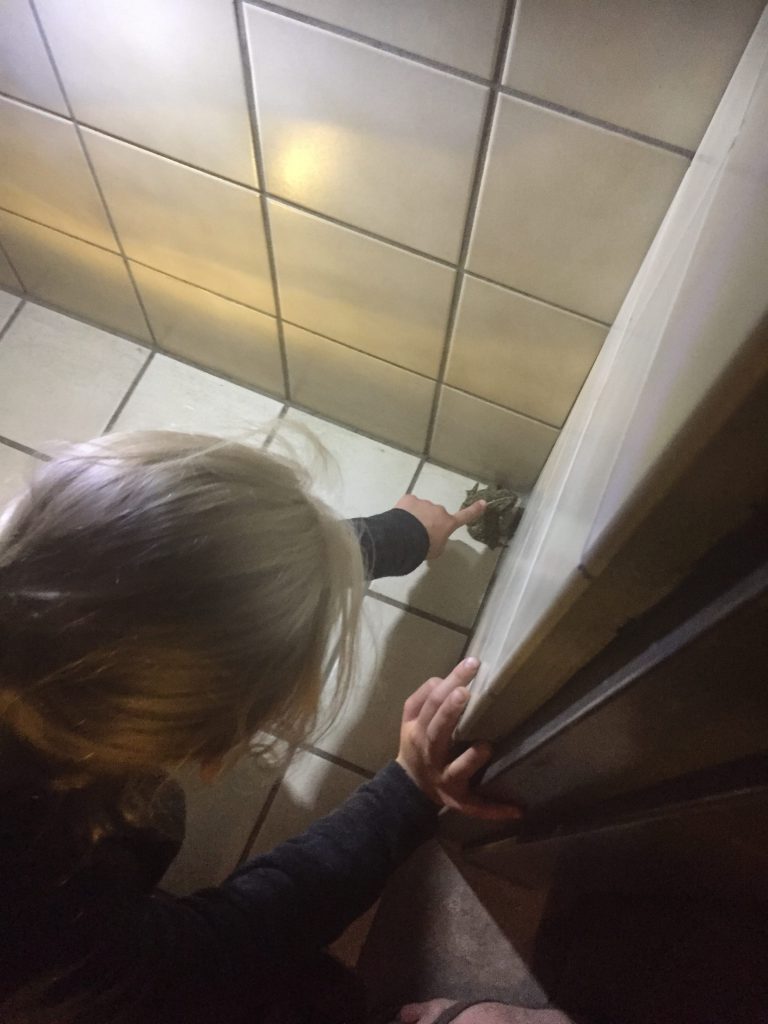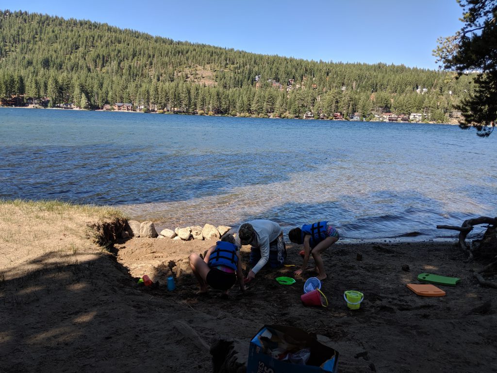 The trash truck driver, who empties the dumpsters at the campground, let both girls check out the truck and honk the horn. Emmy thought it was awesome!Learning how to clean fish. 🙂Just chilling and playing in the dirt. Building sand castles with Uncle Mike. 🙂More fishing. Petting a really big frog.