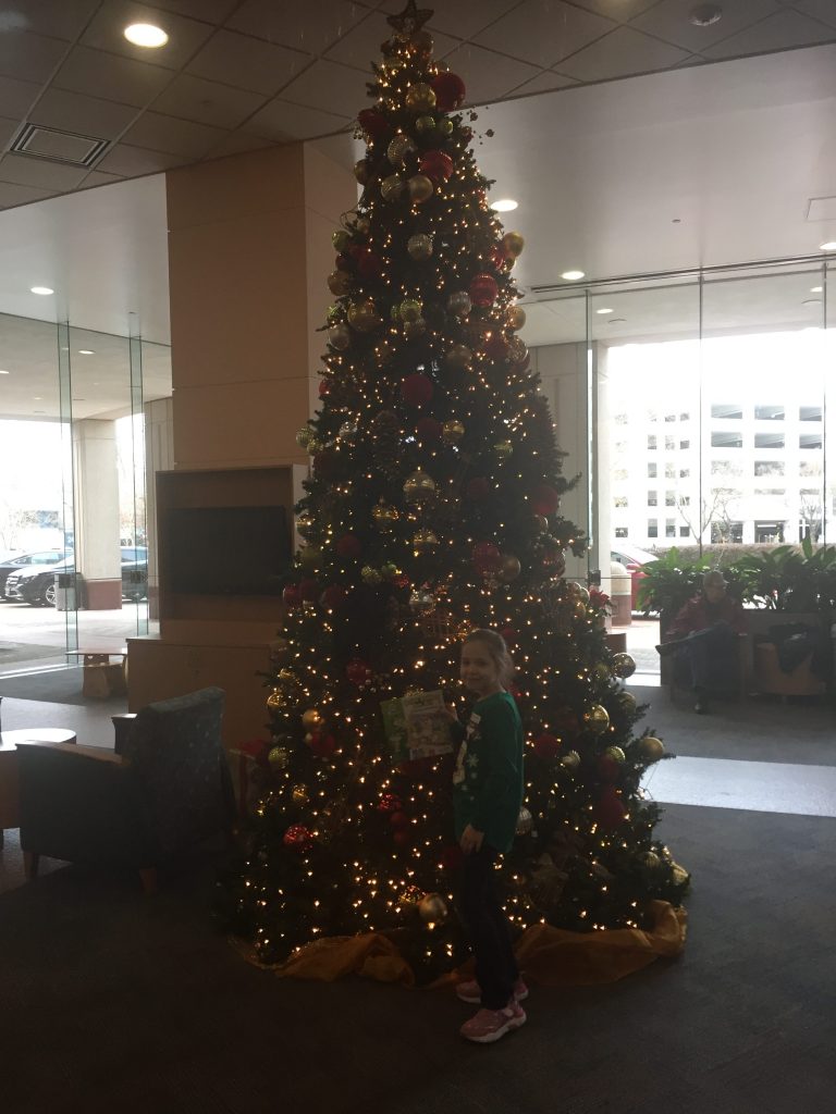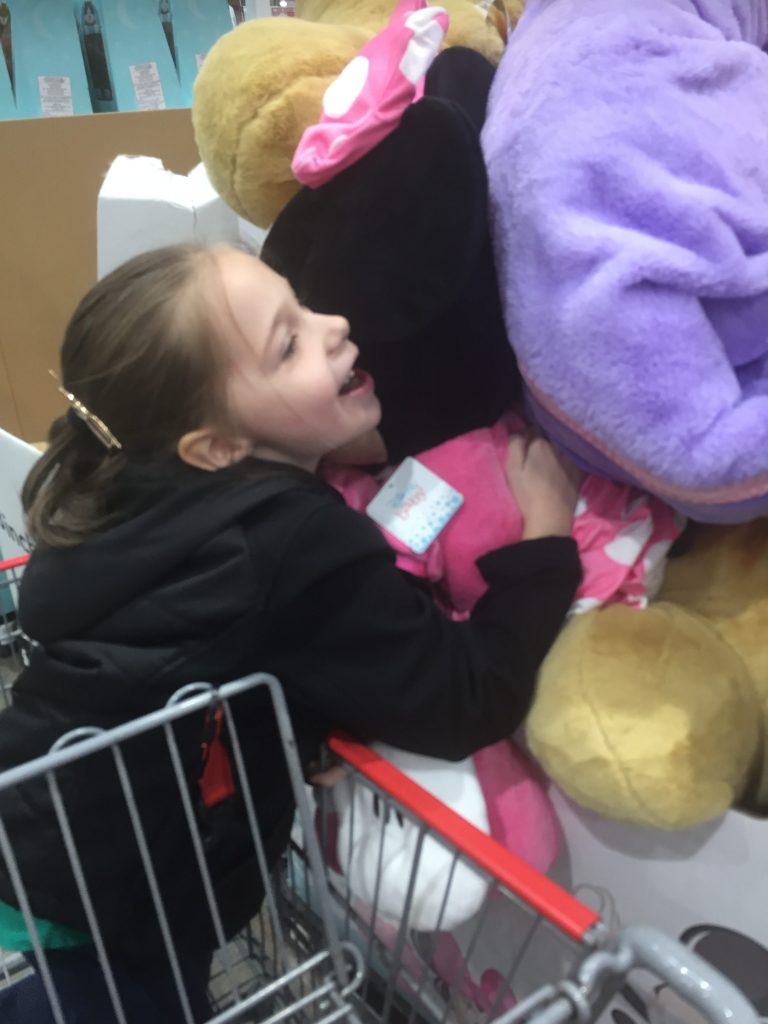 Katie did such a great job at her appt. We had to get a picture by their beautiful Christmas tree. She spotted a Minnie at Costco, so had to give it a hug. 🙂 Share this:EmailFacebookTwitterPinterest
