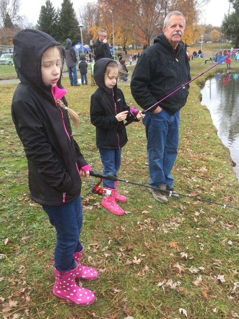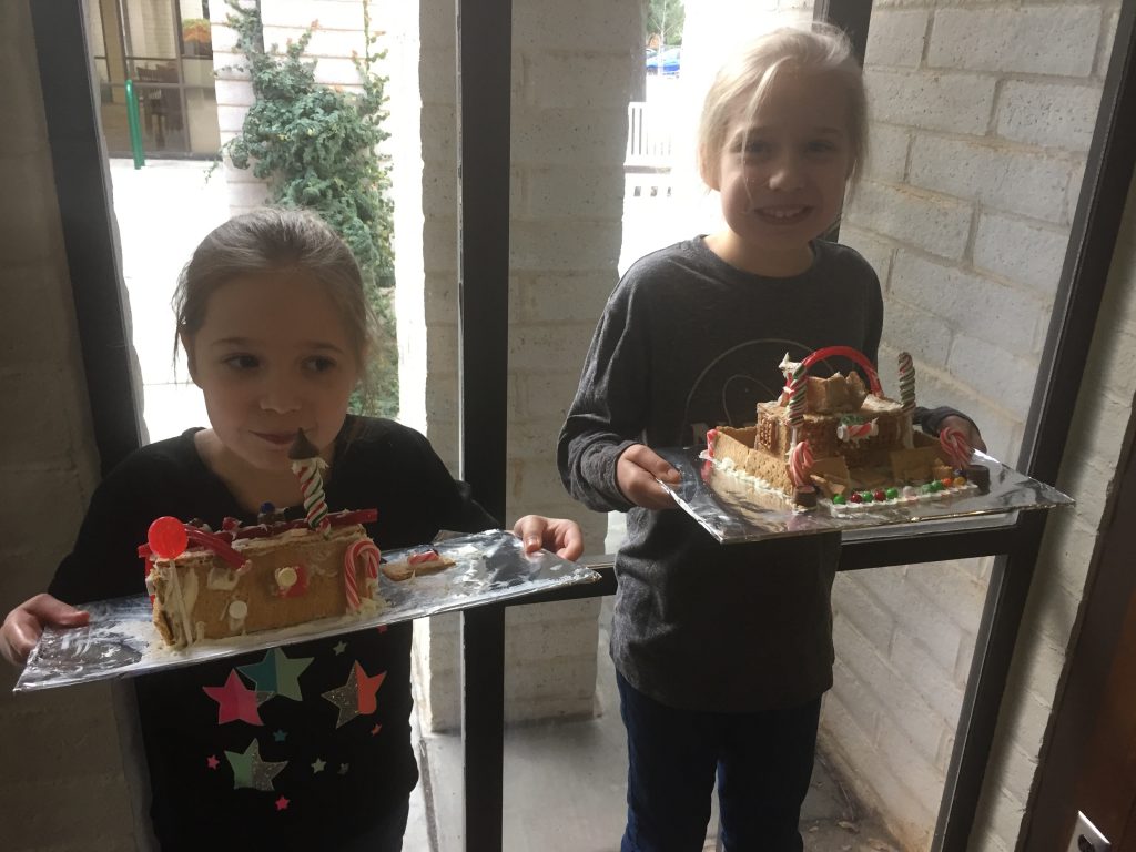 The free kids fishing day was a bit chilly! 🙂 Katie was learning how to cast and getting pretty good at it. Build your own gingerbread houses at the library was fun…and warmer! 😉 The finished designs. Share this:EmailFacebookTwitterPinterest
