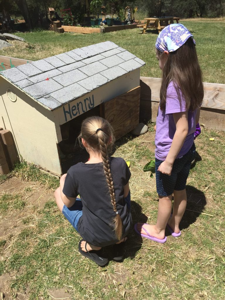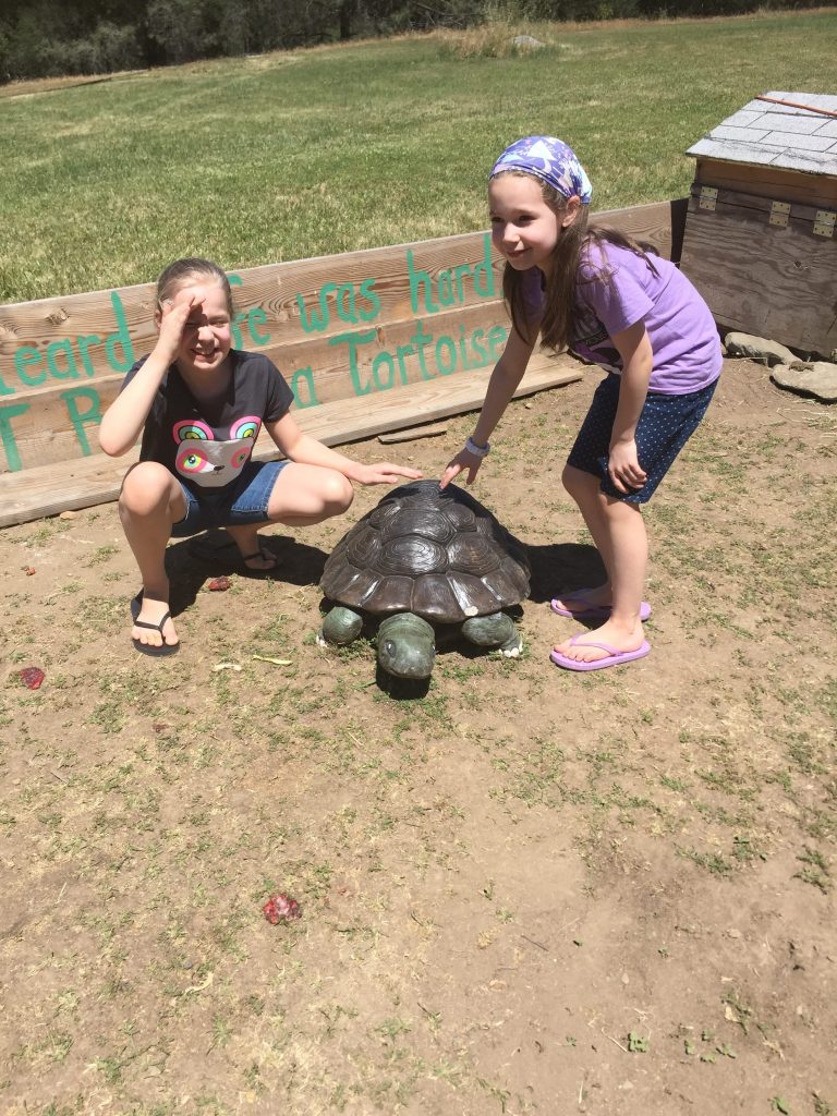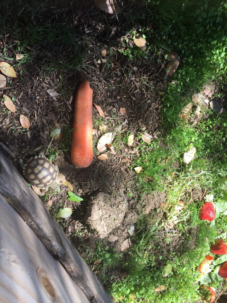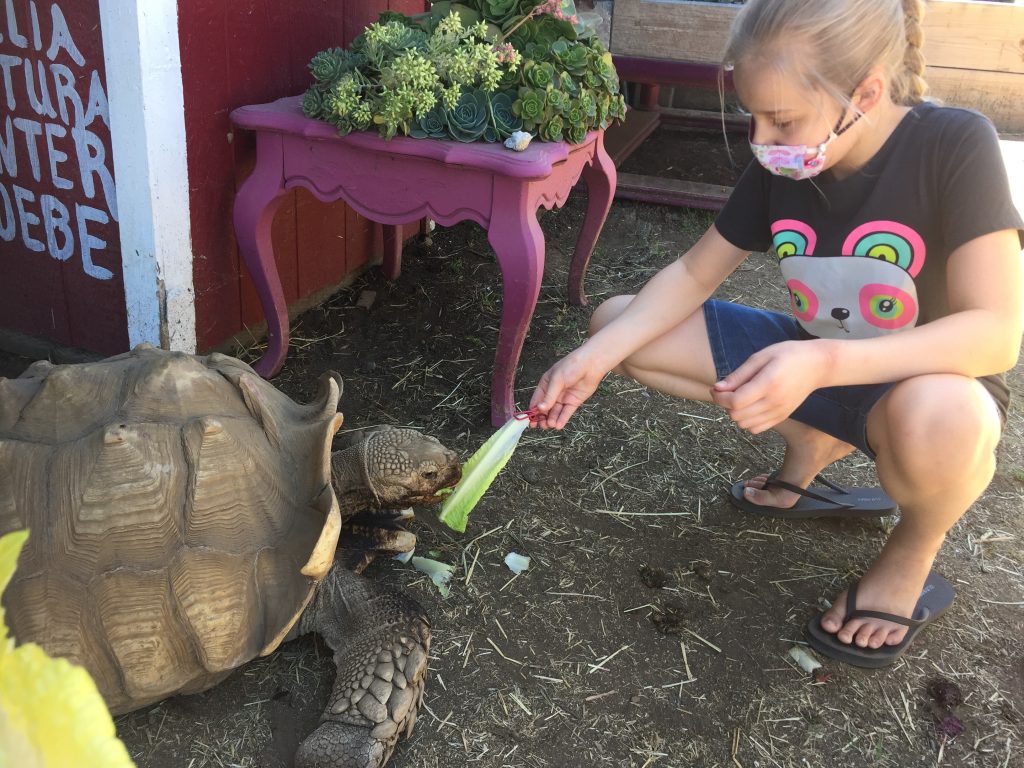 Feeding the tortoises.